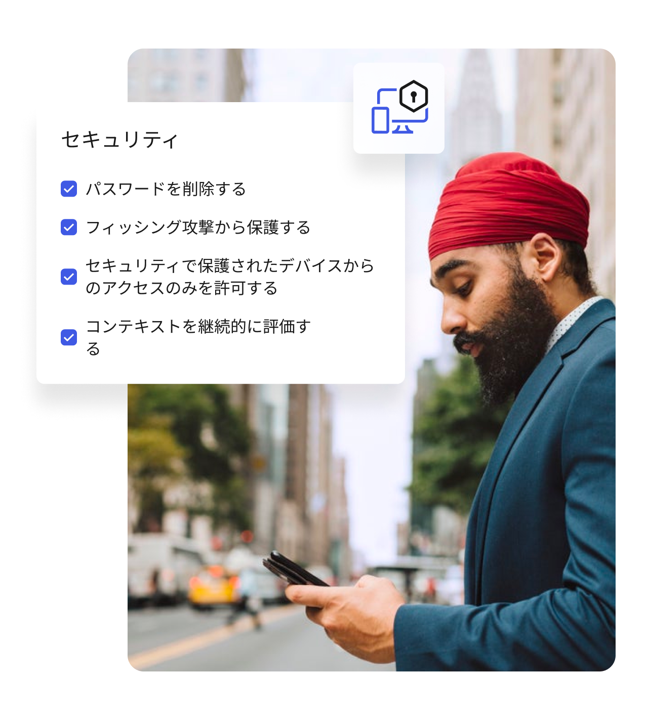従業員、請負業者、ビジネスパートナーが大好きになる、インテリジェントでフィッシングに強い認証体験を使って組織を保護します。
