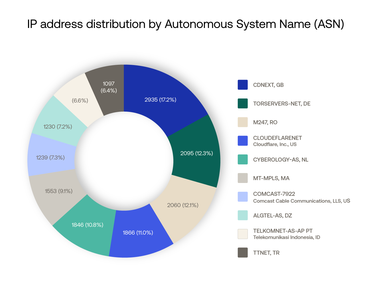 We decided to look at these IPs and their corresponding ASNs to understand what services registered BreachForums participants used in order to preserve (or, in some cases, not preserve) their anonymity. The theory: If threat actors trust these networks, these networks may also be favored to launch various identity-centric account takeover attacks.