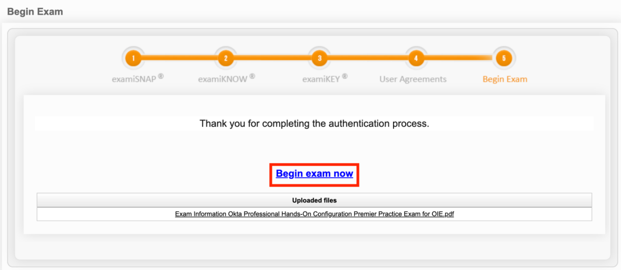 以上で模擬試験前の確認作業は全て完了となります。受験の準備ができましたら 「Begin exam now」 をクリックしてください。
