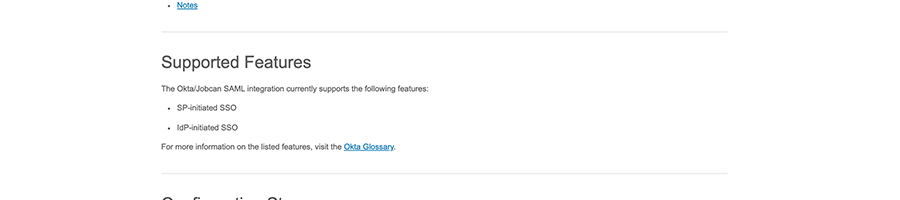 *Okta Integration Network (OIN)に登録のアプリケーションについては、どの認証方式をサポートしているかを各アプリケーションのSetup Intructionsより「Supported Features」にて確認できます。