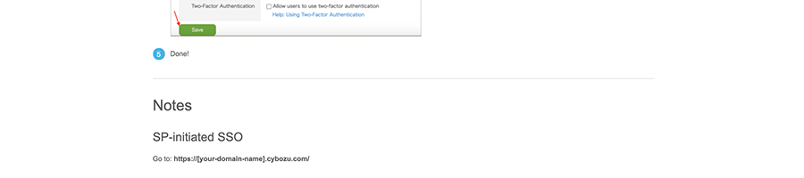 管理ダッシュボード: Applications → Applications → Cybozu → Sign On → Settings → Sign on methods, SAML 2.0 “View Setup Instructions”