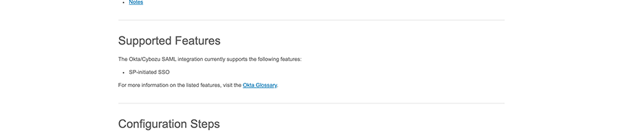 *Okta Integration Network (OIN)に登録のアプリケーションについては、どの認証方式をサポートしているかを各アプリケーションのSetup Intructionsより「Supported Features」にて確認できます。
