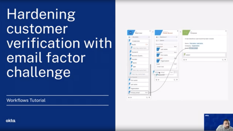 Okta Workflows can be used to verify customers using factors that require a challenge and verify operation. In this template we’ll use email factor challenge to verify customers by building two flows.