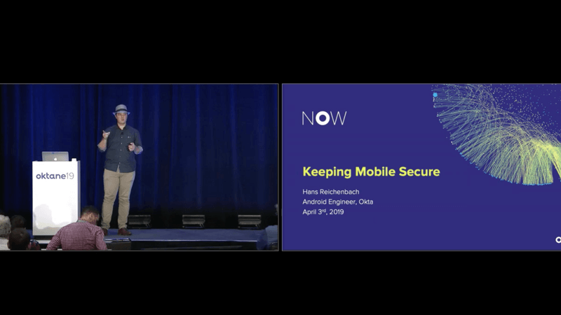 Hans R.: Today, I'll be talking about how to develop mobile apps securely. Obviously, before we get started, I thought they were injecting JavaScript into my slides at first, but it turns out it's legalese. I'm sure it's important for something. Quick disclaimer of my own, I am an Okta speaker. I do not speak for Okta. So anything I say is my own words. Any examples I may use, I'm not trying to pick on anybody, any one country or group or anything like that. It's just I'm making up examples on the spot..